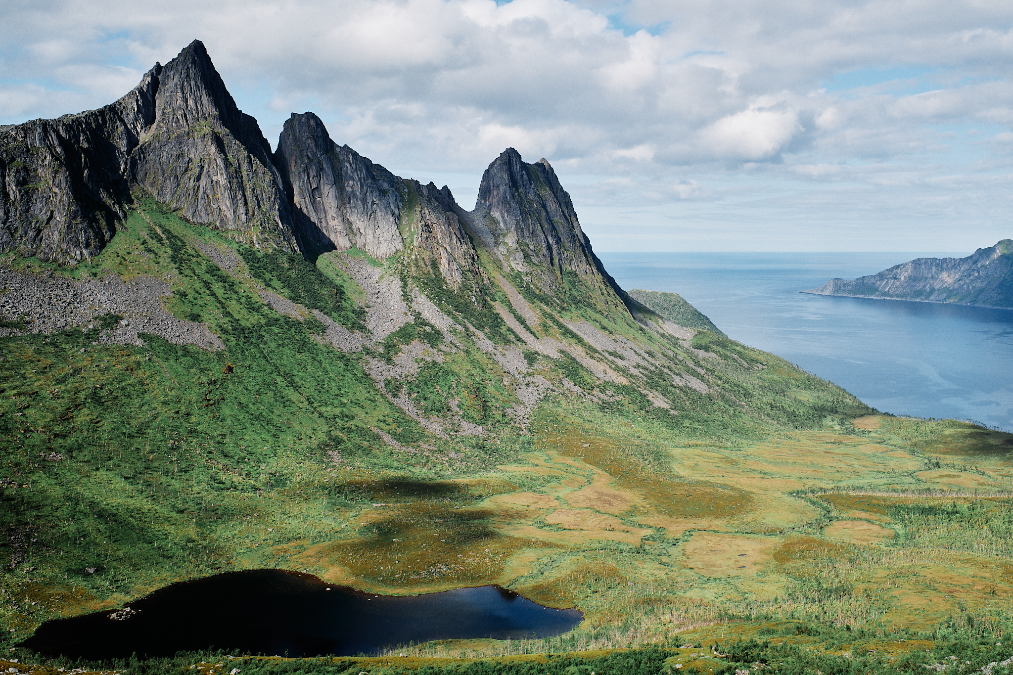 De Hesten hike vonden we de meest indrukwekkende op Senja. Je hebt er een mooi uitzicht op Segla.
